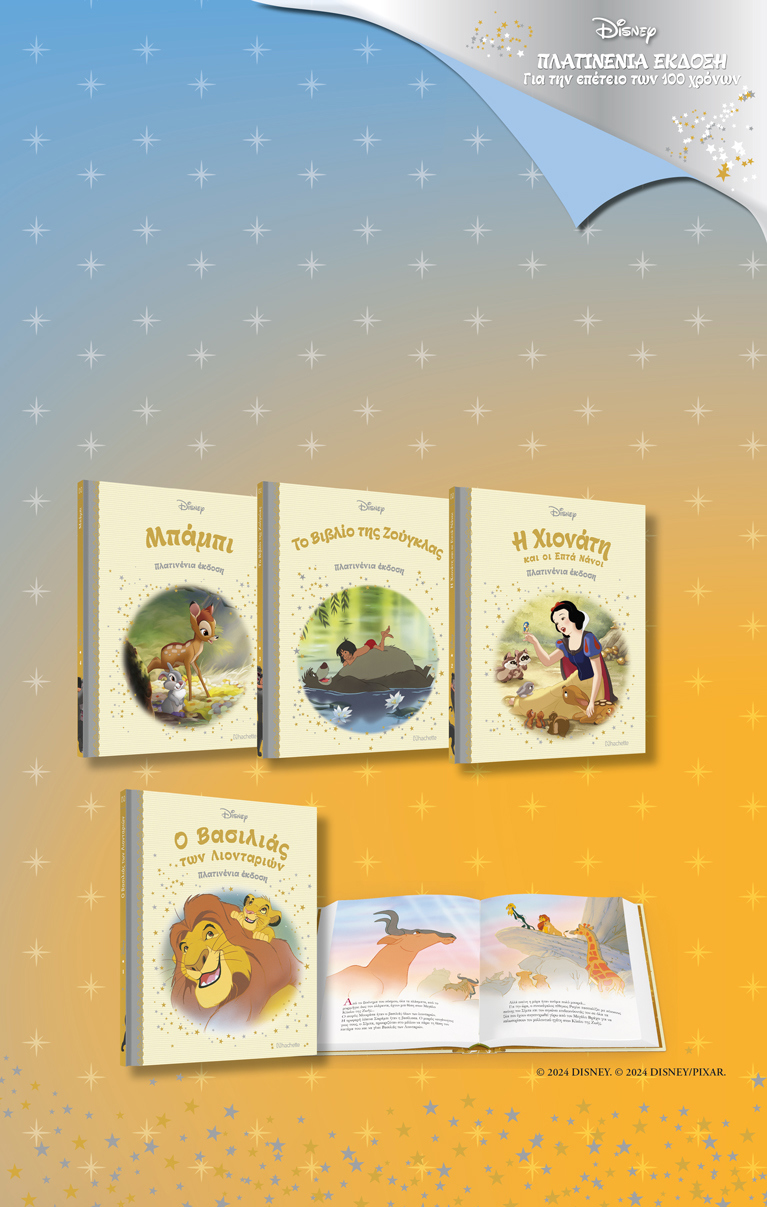 Η πλατινένια έκδοση μεταφέρει εσάς και το παιδί σας στον μαγικό κόσμο μερικών από τους πιο αγαπημένους ήρωες της Disney. Κάθε τόμος έχει εικονογραφηθεί με αγάπη και αφηγείται την περιπέτεια ενός χαρακτήρα σε γλώσσα φιλική προς τα παιδιά.
